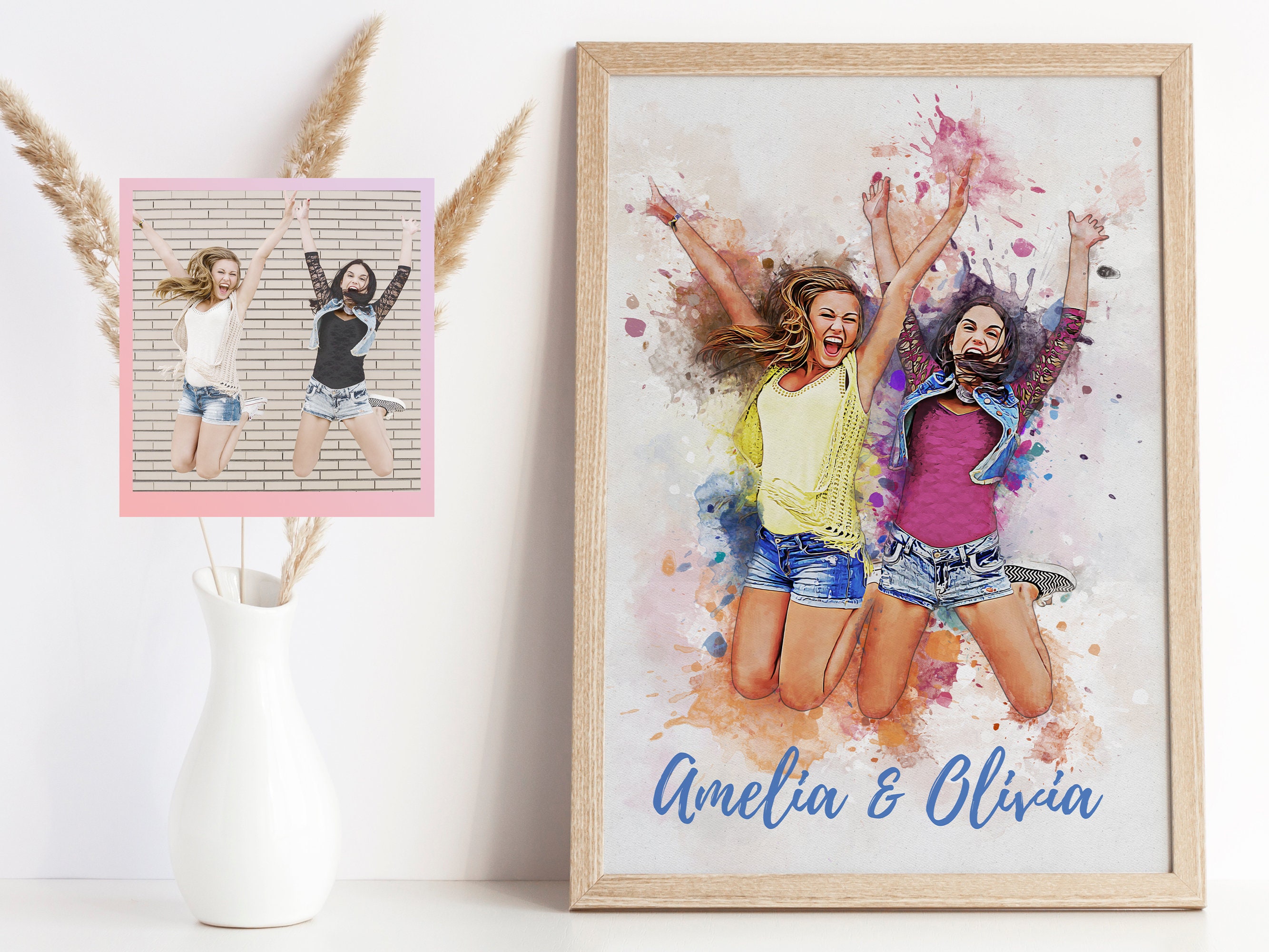 Personalized Best Friend Illustration Wall Art Portrait Pretty Timely Llc